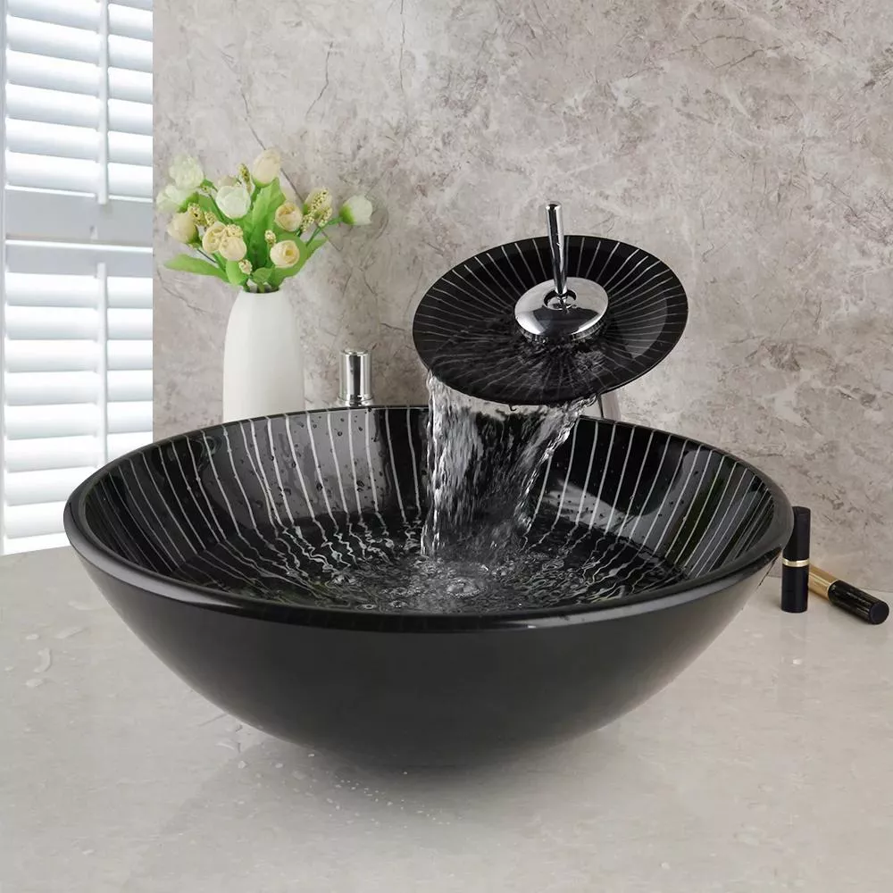 Don’t settle for ordinary. This beautiful ceramic vessel sink with black waterfall faucet is designed to bring both luxury and functionality to your bathroom. Whether you’re completing a renovation or building a new bathroom, this set is a must-have. Upgrade your space with a product that’s as beautiful as it is practical – click to buy today!