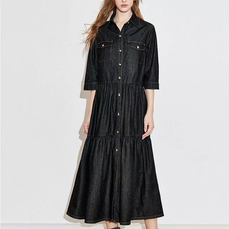 What makes this winter dress special is its perfect balance of comfort, style, and versatility. The ribbed knit texture creates an elegant vertical line that visually elongates your figure, while the high-stretch fabric ensures a comfortable fit for daily wear. Its mid-calf length — approximately 29 to 31 inches depending on size — offers a polished look that works beautifully in both casual and formal settings. This is the dress you’ll reach for when you want to feel warm, stylish, and effortlessly put together.