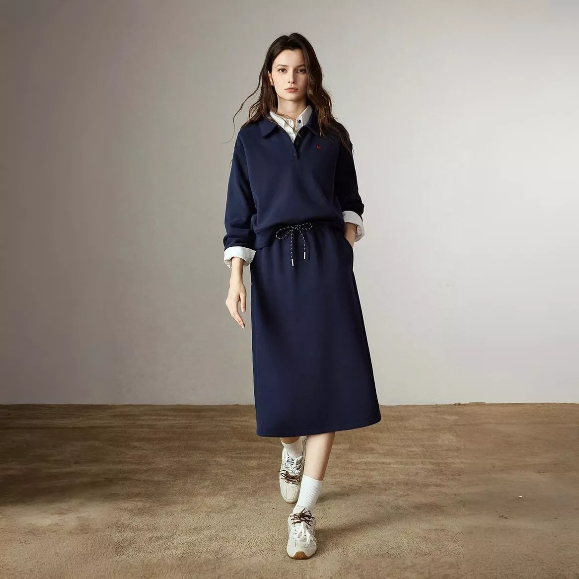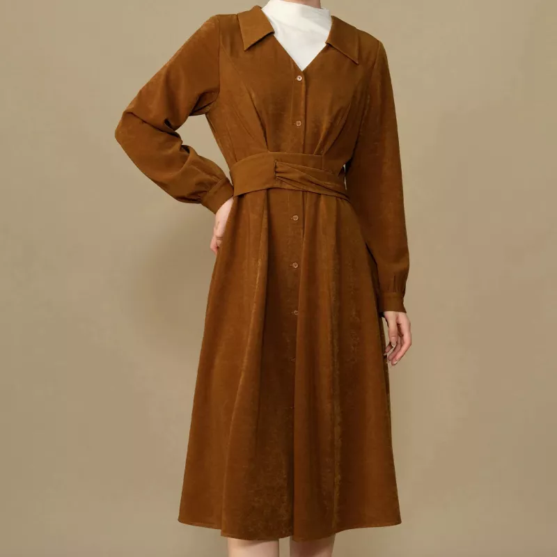 This dress features a gentle A-line silhouette that flatters your natural waist and moves gracefully with every step. The lightweight knit fabric and non-stretch structure help it maintain a beautiful shape, giving you a polished appearance whether you’re heading to brunch, the office, or a relaxed weekend gathering. The pleated skirt offers soft movement and texture, while the pullover design ensures easy wear without fuss.