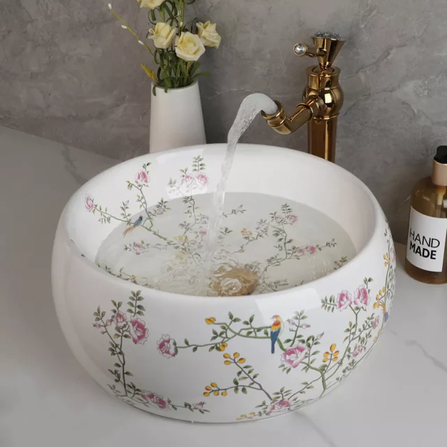 • Elegant Gold Edge: The gold edge adds a luxurious feel to the classic white ceramic sink, making it a perfect fit for upscale bathroom decors.
