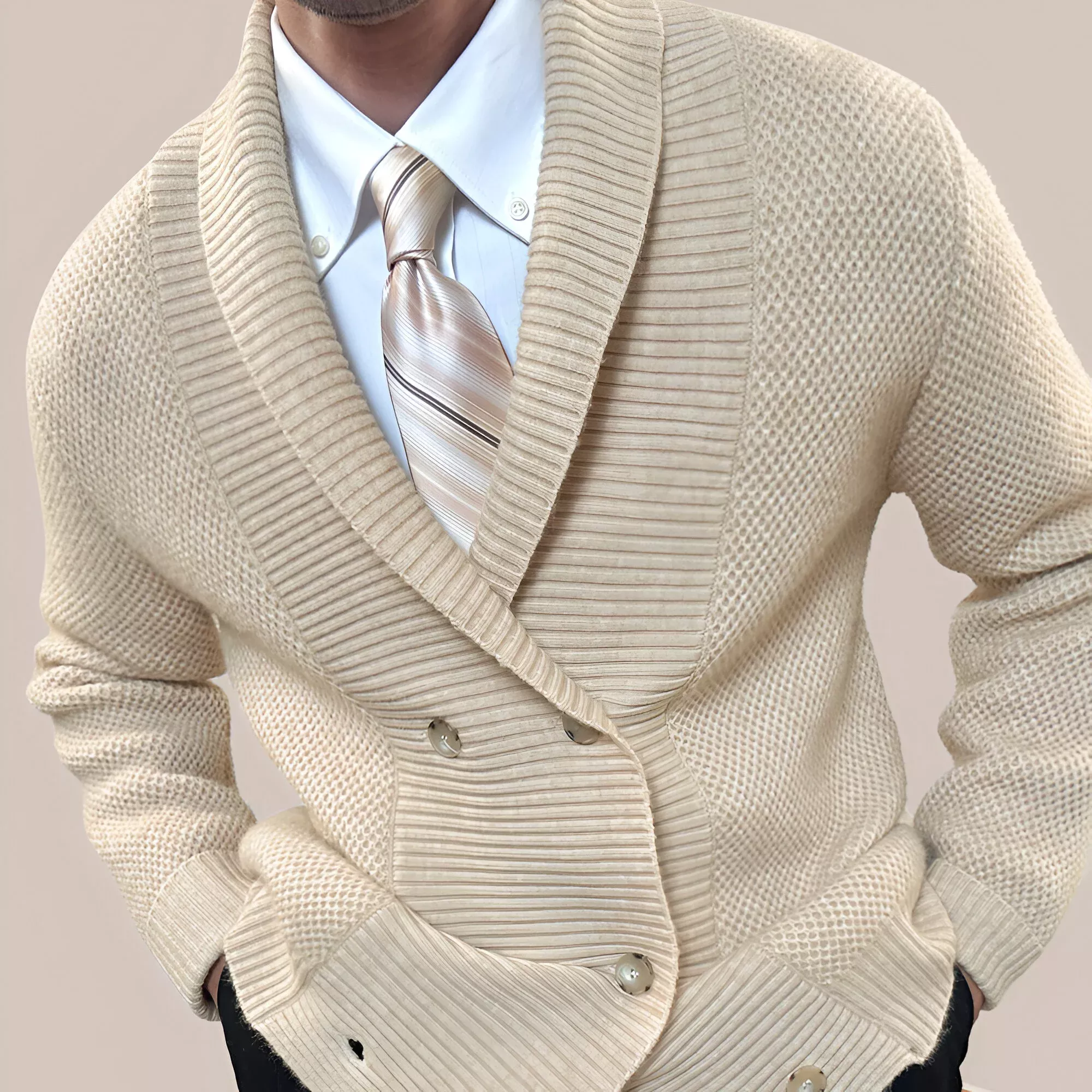 This sweater is designed with a thick, three-dimensional pit-stripe structure, giving it a premium feel that resists pilling and wrinkles. Made with high-quality polyester and spandex blend, it provides a soft, flexible touch without losing shape. At approximately 14 ounces per square yard, the fabric ensures warmth without being heavy, making it ideal for transitional weather.