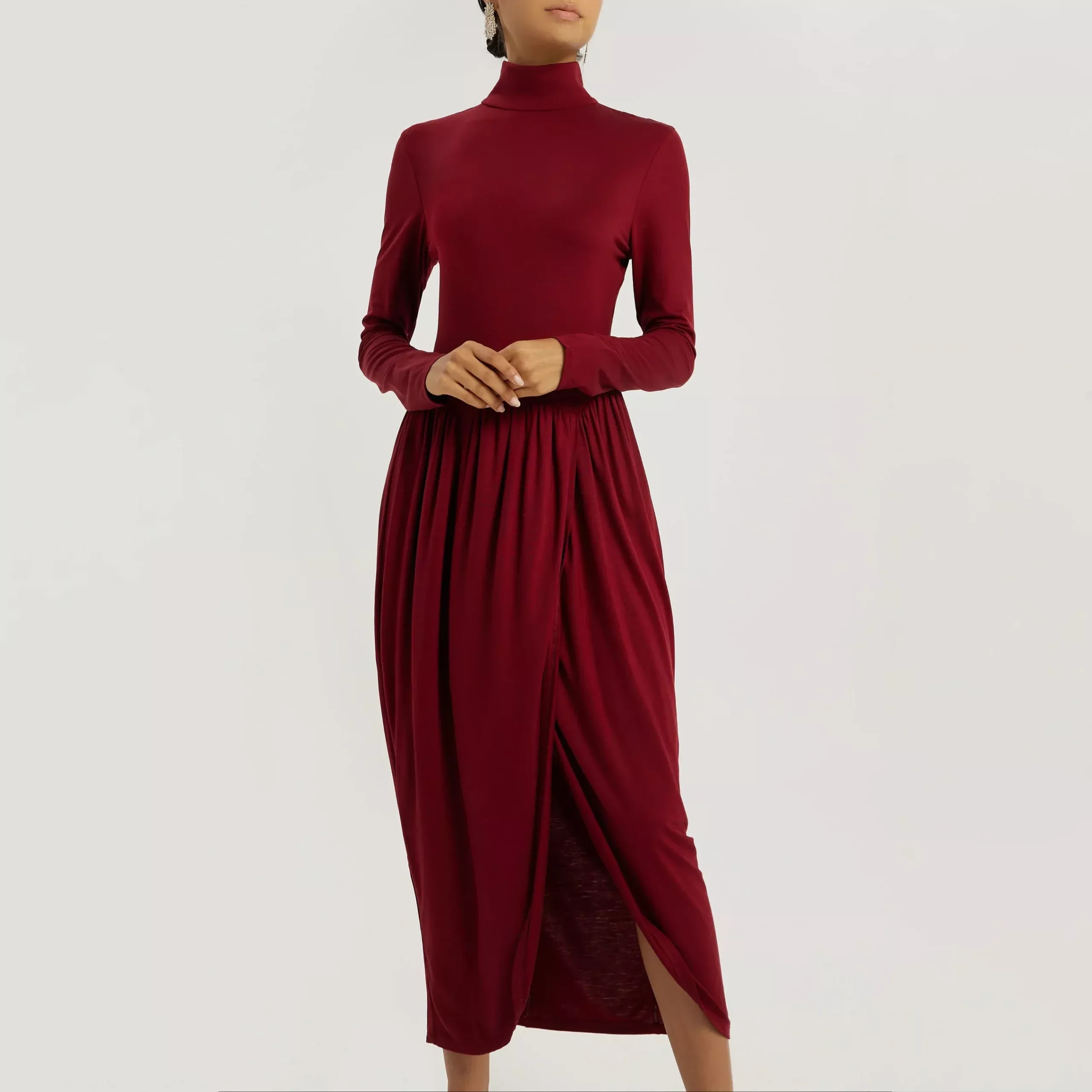 This versatile dress is ideal for any season. Its breathable knit makes it comfortable during transitional weather, while its turtleneck design adds warmth during cooler months. Whether you’re heading to a casual brunch, a relaxed office environment, or a weekend outing, this dress adapts effortlessly to your day. With its solid pattern and clean, minimalist design, it serves as the perfect canvas for scarves, coats, boots, and accessories.