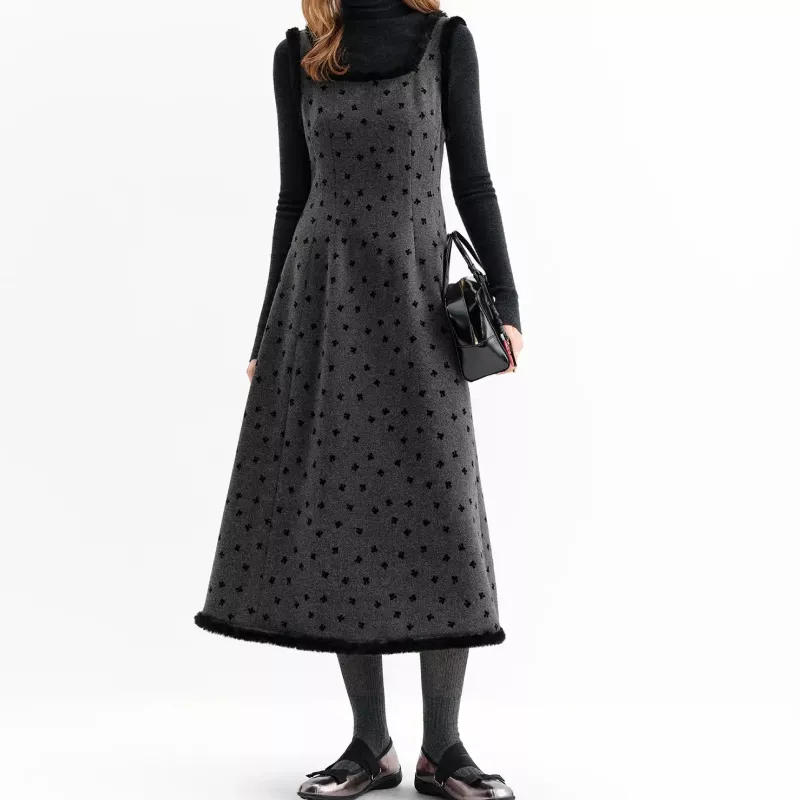 Elevate your everyday style with this stunning Winter long wool-blend dress. Designed for women who appreciate comfort without compromising elegance, this sleeveless turtleneck dress blends a cozy knit texture with a flattering A-line silhouette. Its loose waist and mid-calf length create a relaxed yet refined look, perfect for layering or wearing on its own. Crafted from a soft cotton blend with medium stretch, it offers ease of movement while maintaining its shape for all-day wear.